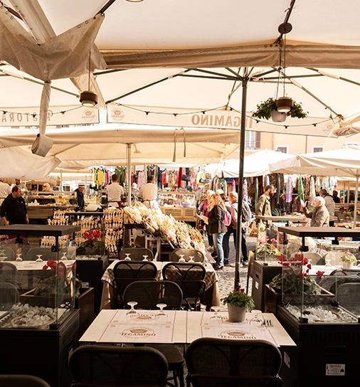 From the heart of Campo de’ Fiori, we bring the true essence of Rome to your table, made up of flavour, warmth and conviviality.